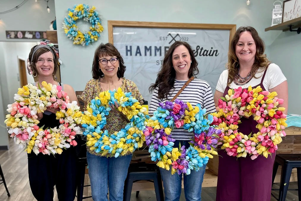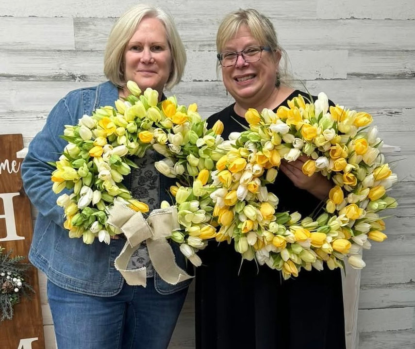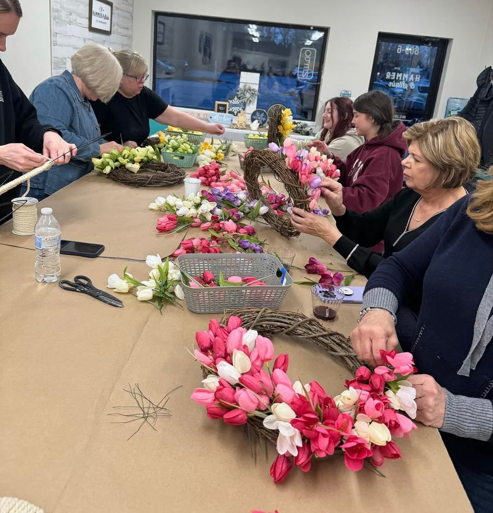 During this hands-on experience, you'll design & assemble a stunning tulip wreath using beautiful artificial blooms. Its the perfect piece to brighten your door & usher in Spring!