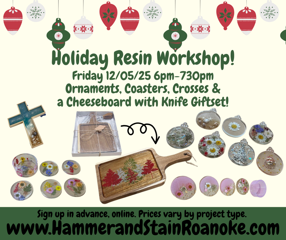 12/05/25 (Friday) Holiday Resin Workshop!! 6pm - 730pm