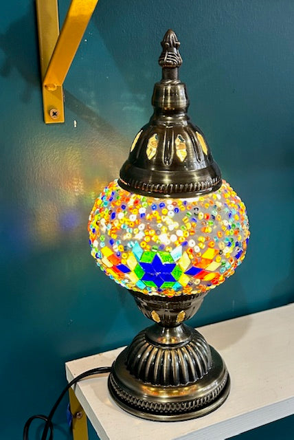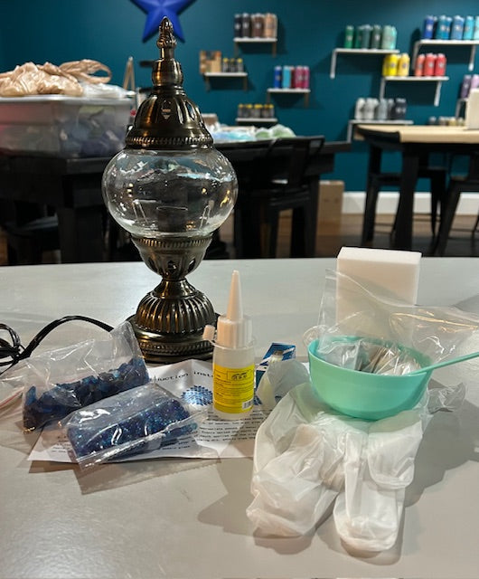 - Mosaic Lamp Kits (approx 10"H)(lamp, tiles, beads, glue, grout, light bulb/cord, instructions, etc included)